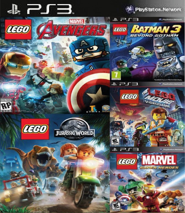 5 juegos en 1 LEGO MARVELS AVENGERS LEGO JURASSIC WORLD  THE LEGO MOVIE VIDEOGAME LEGO MARVEL SUPER HEROES LEGO  BATMAN 3 BEYOND GOTHAM Ps3